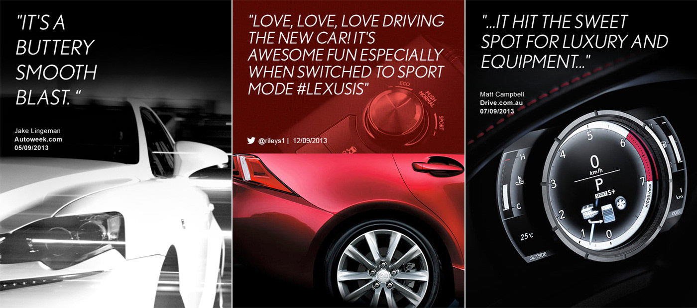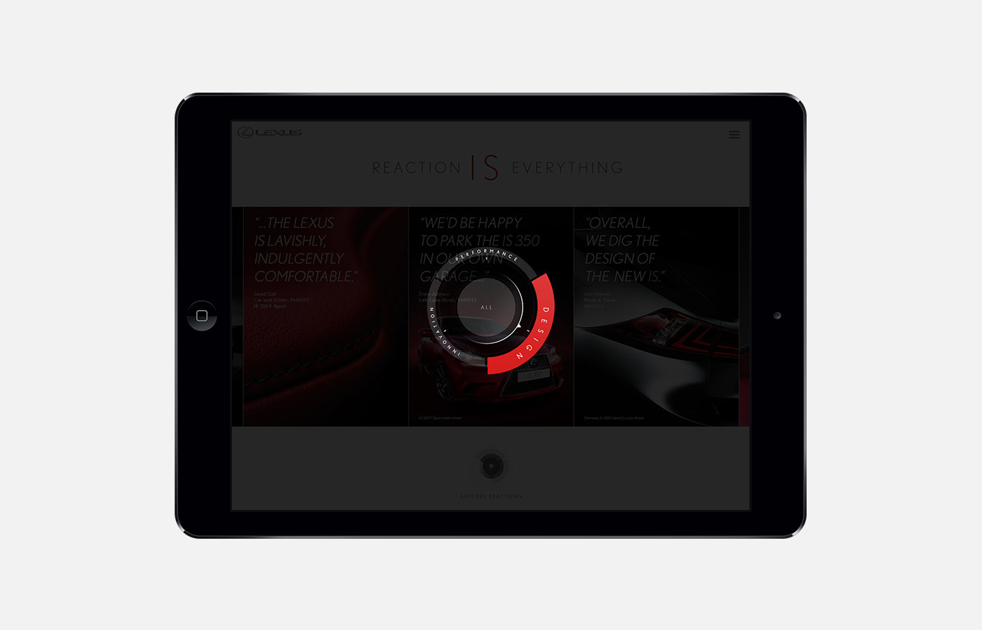 We captured worldwide reactions to the new Lexus IS, from journalists and Lexus engineers to actual customers. Then we aggregated them all in one interactive experience.