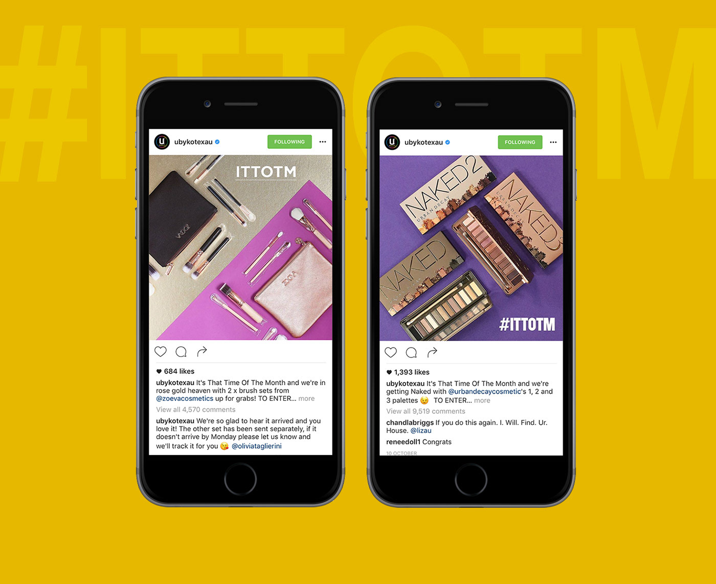 The ‘It’s that time of the month’ post (or #ITTOTM) flips what is normally a negative phrase into a positive one and rewards followers with giveaways at a specific time each month, often each post receives thousands of user comments and tags (9,519 comments being the record so far).